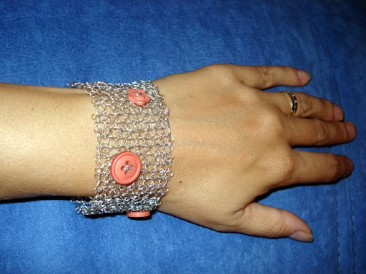 žica - in nastane tole. Enostavna zapestnica, ki sem ji dodala gumbe. Lahko bi dodala